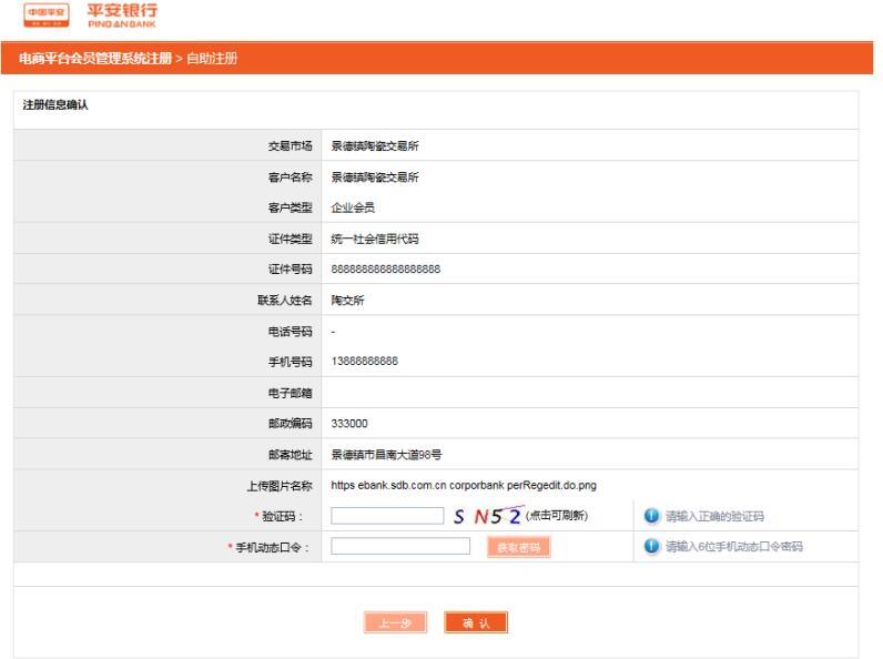 步驟三:點(diǎn)擊下一步進(jìn)入確認(rèn)頁(yè)面,在有效時(shí)間內(nèi)輸入正確的手機(jī)動(dòng)態(tài)口令,點(diǎn)擊確認(rèn)提交系統(tǒng),如圖:
