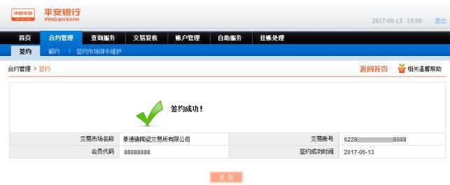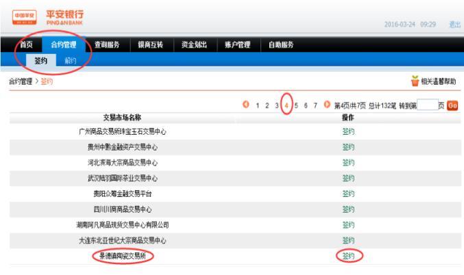 會(huì)員登錄系統(tǒng),進(jìn)入合約管理—簽約功能,系統(tǒng)返回所有交易市場(chǎng),選擇【景德鎮(zhèn)陶瓷交易所】,點(diǎn)擊簽約按鈕進(jìn)行簽約操作。