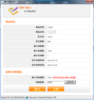 3、申購數量不能超過最大可申購量,且一個交易商只能申購一次